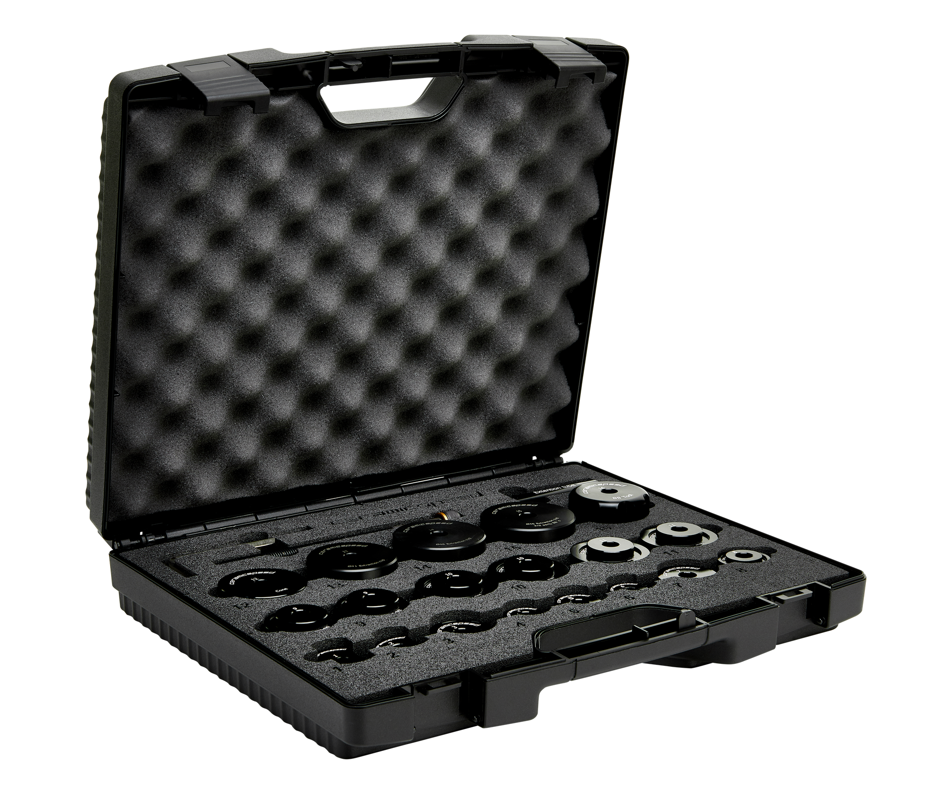 22 parts for installation and removal of complete range of CeramicSpeed Press Fit Bottom Brackets.